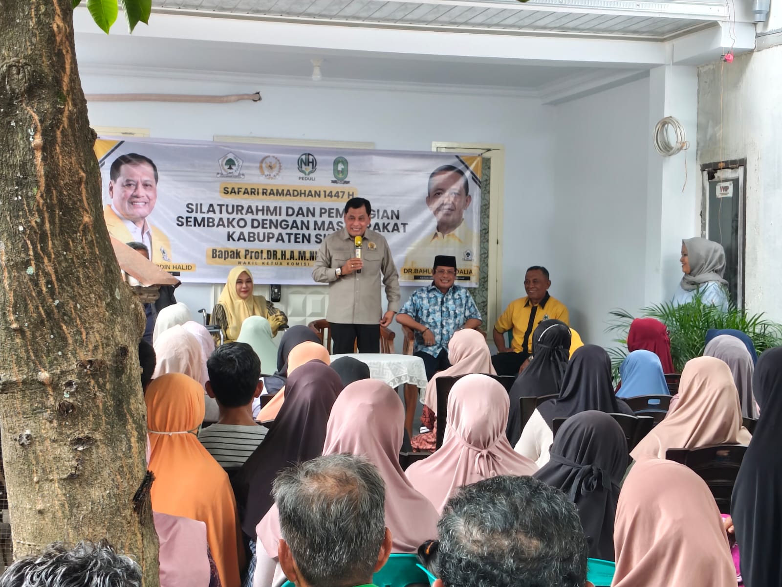 Dalam agenda Safari Ramadan itu, Nurdin Halid membagikan ratusan paket sembako kepada masyarakat sebagai bentuk kepedulian terhadap warga di bulan suci Ramadan.