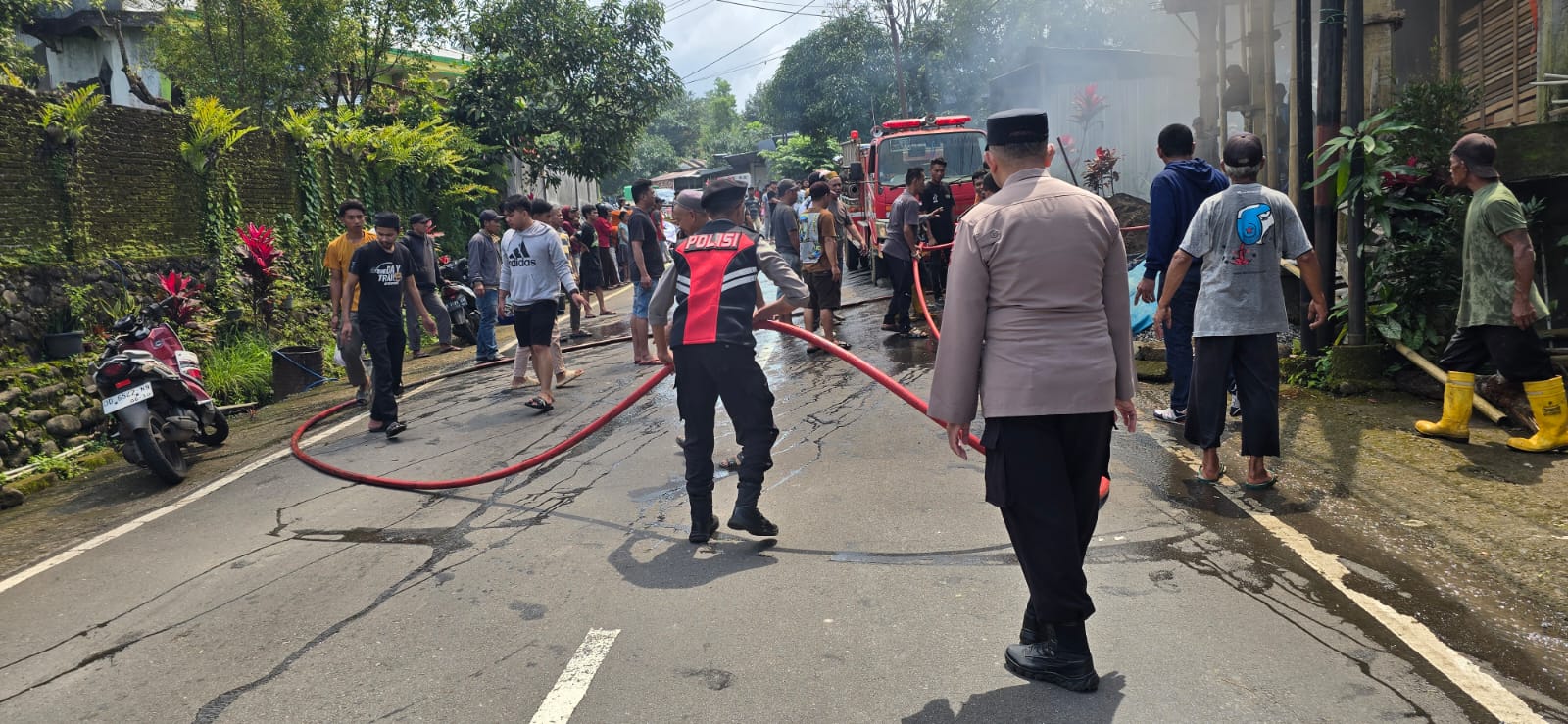 “Setelah melihat kepulan asap, kemudian saksi berteriak minta tolong kepada warga sekitar TKP dengan cara berteriak ” kebakaran “, dan kemudian warga sekitar TKP berusaha memadamkan api namun api semakin membesar,” jelasnya.