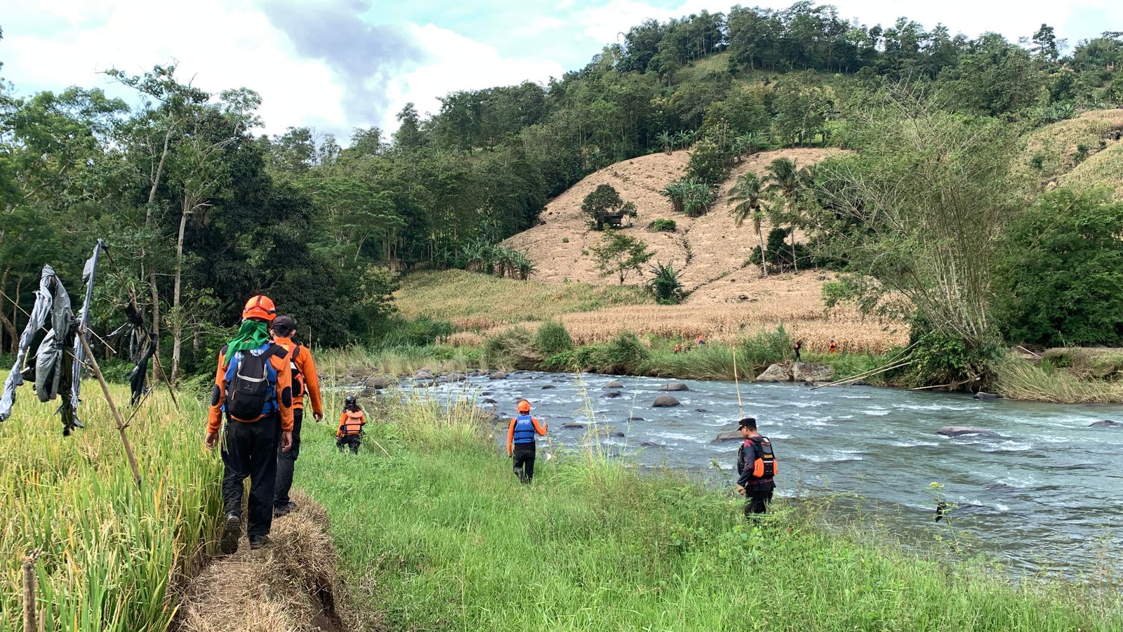 Saat dilakukan penyisiran di sekitar area sawah, warga menemukan barang milik korban di tepi Sungai Bilareng. Pada saat itu kondisi air sungai sedang meningkat akibat hujan sehingga korban diduga terseret arus.